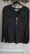 Chic black blouse with a gold zipper accent. Features two front pockets. Ideal for versatile styling.