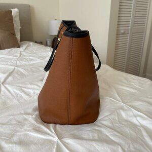 Michael Kors Black, Brown, and White Tri-Color Tote Bag with Gold Detailing. Great sized tote bag that can fit a large laptop and many other items. Great quality overall, some wear and tear shown in photos.