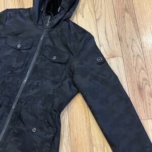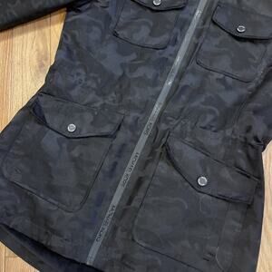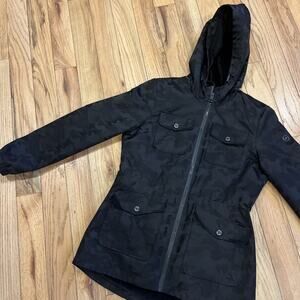 Michael Kors Black Camouflage Women’s Jacket Full Zip Button Snap Pockets Small