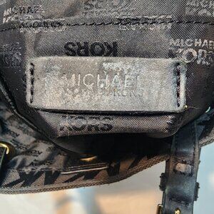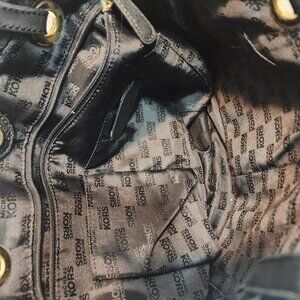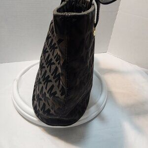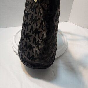 Michael Kors Black Canvas Tote Leather Straps Gold Hardwares