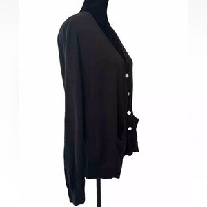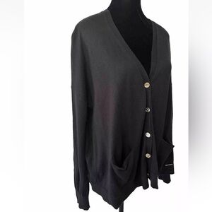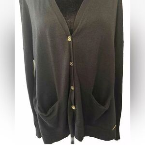 Michael Kors Black Cardigan Sz S Sweater Slouch Pockets Logo Buttons Cotton Top