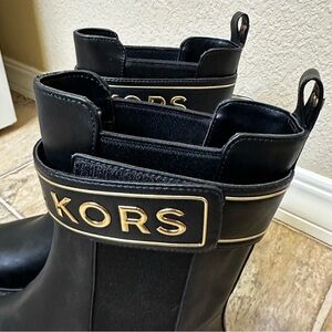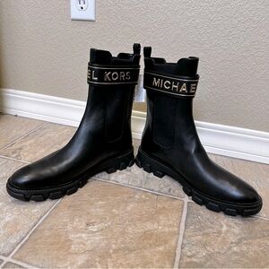 Michael Kors Black Chelsea Boots with Gold Logo Chunky Lug Combat Boots size 10