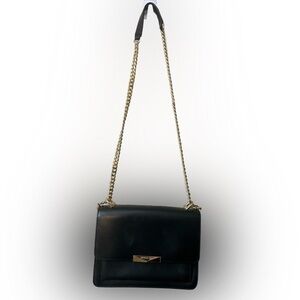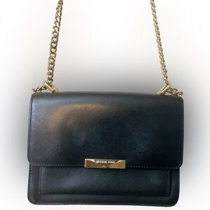 Chic black crossbody bag by Michael Kors. Features a stylish gold chain strap. Perfect for elevating any look.