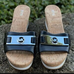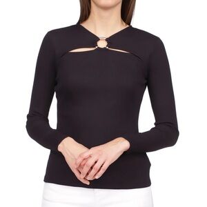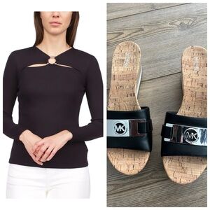 Elegant black cutout top with stylish Michael Kors sandals. Perfect for a modern look.