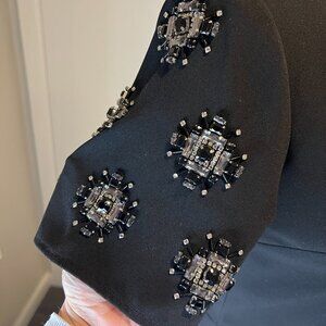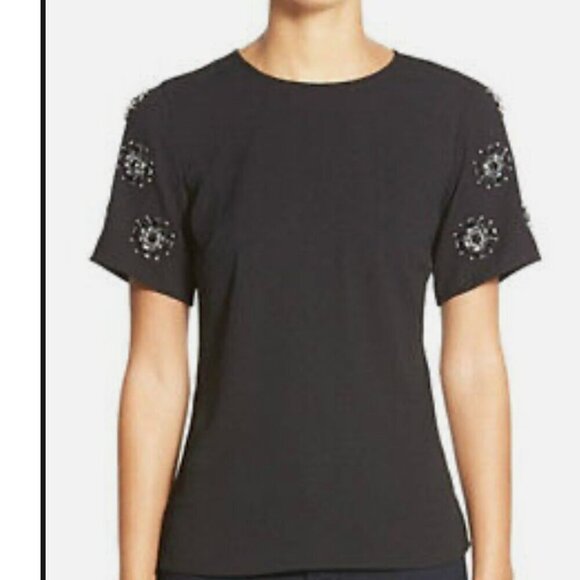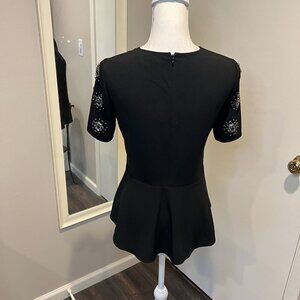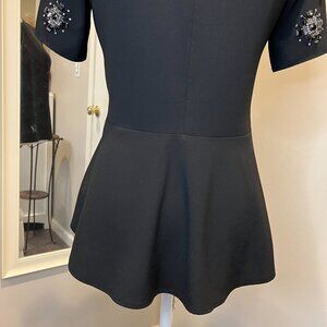 Michael Kors Black Embellished Sleeve Peplum Back Top, Size XS