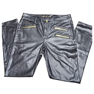 Michael Kors Black Faux Leather Front Zip Pocket Pants Womens Size 8