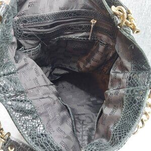 Michael Kors Black Faux Snakeskin Tote Bag With Gold Chain Handles