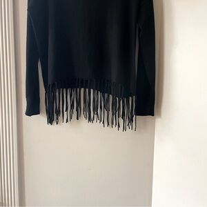 Black cowl turtle neck fringe bottom sweater by Michael Kors