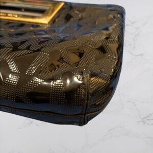Michael Kors Black Glossy Clutch with Gold Accent