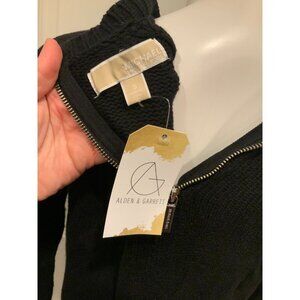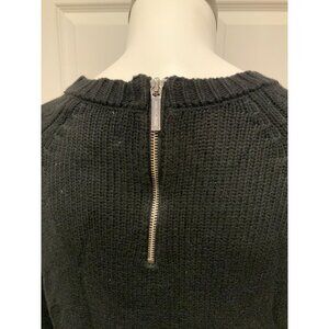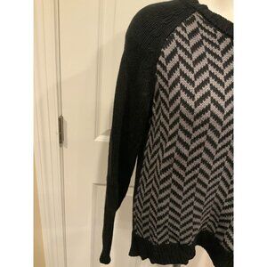 Michael Kors Black & Gray Herringbone Sweater W/ Rib Knit Trim, Size Small
