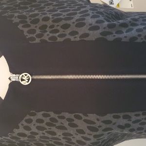 Cute Michael Kors Black & Gray Leapard Print Lined Dress with MK Pull Front Zipper