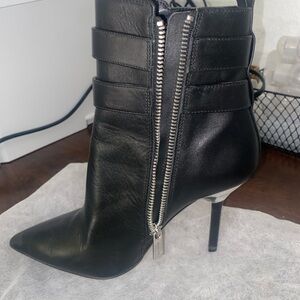 Chic black boots featuring stylish buckle straps. Ideal for a modern look.