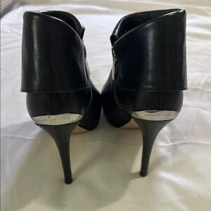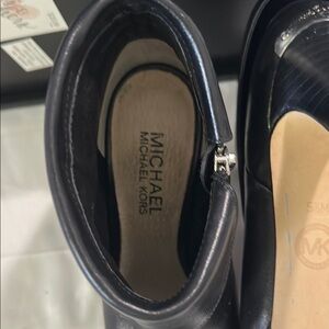 Michael Kors Black Heeled Boots with Peep-Toe Design.