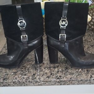 Michael Kors Black Heeled Leather and Suede Boots with Silver Accents