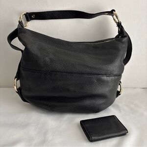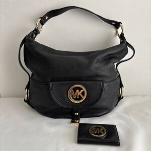 Michael Kors Black Hobo Bag Gold MK Logo & Wallet Set