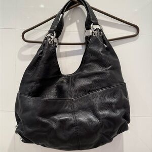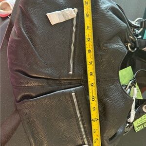 Elegant black hobo bag by Michael Kors. Features silver accents and dual front zippers. Perfect for everyday use.
