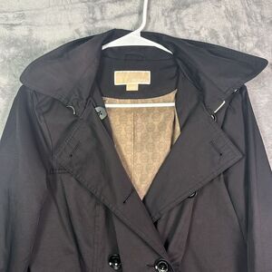 Michael Kors Black Hooded Front Button Trench Jacket Coat Size Small