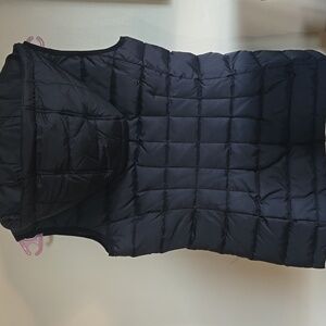 Chic black quilted vest with hood and gold hardware by Michael Kors. Ideal for layering with a modern look. EUC