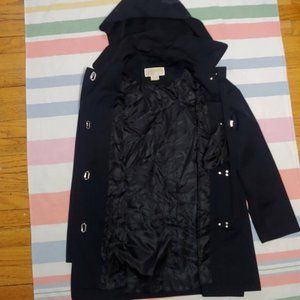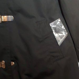 Cotton/polyester blend raincoat with parachute/toggle clips and removeable hood