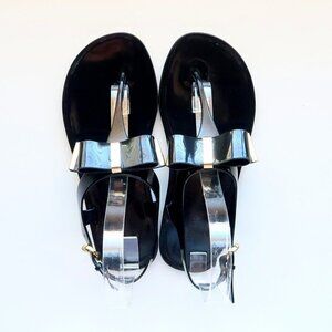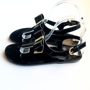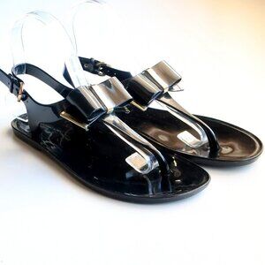 Michael Kors Black Jelly Flat Thong Sandals Summer Shoes with Bow Size 6
