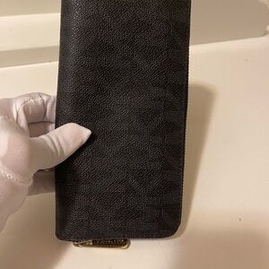 Michael Kors Black Jet Set Zip Around Wallet Silver...