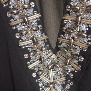 The Michael Kors sheer black Cover Up is the perfect piece to finish any MMK beach or evening ensemble. No tag but never worn. Exquisite silver tone beading around neckline. Add a glamorous flare to your resort look.