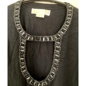 Michael Kors Black Knit Beaded Sequin Cut-Out Neck Long Sleeve Sweater Size L