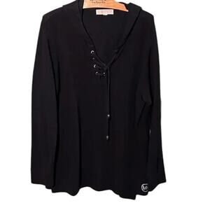 Michael Kors Black Knit Hoodie with Rhinestone Logo XL Lace Up