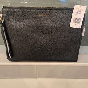 Michael Kors Black LG Tech Zip Clutch-Leather