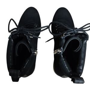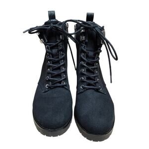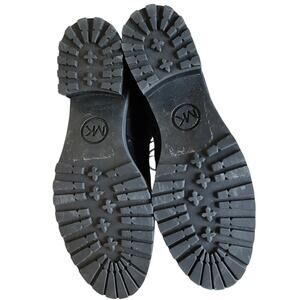 Michael Kors Black Lace Up Side Zip Ankle MOTO Chunky Lug Sole Biker Boots 7 1/2