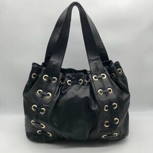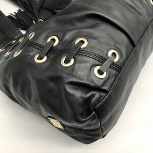 Michael Kors Black Leather Astor Grommet Shoulder Bag