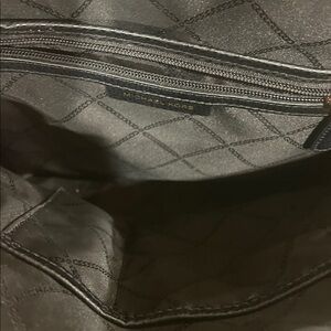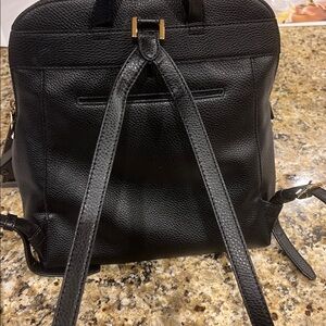 Elegant black leather backpack by Michael Kors. Features gold-tone zippers and logo detail.