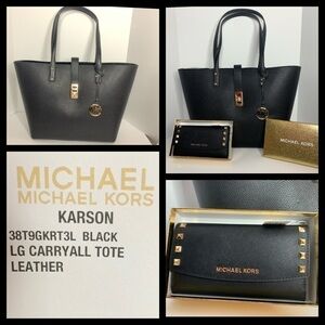 Michael Kors Black Leather Bag & Wallet Set Karson
