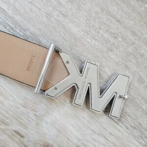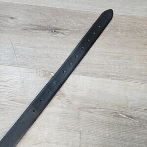 Michael Kors Black Leather Belt sz Small Silver Tone Buckle Tortoise Signature. retails $58. some condition from extra holes poked for additional sizing. measurements are approximately: total length 39 x 1 inches.