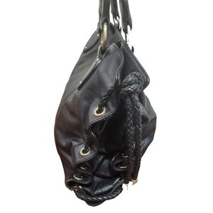 Michael Kors Black Leather Braided Handle Tote Satchel Whipstitch Grommet Large Bag