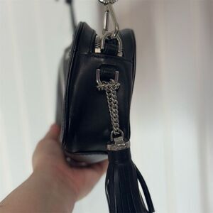 Michael Kors Black Leather Camera Crossbody Bag Gold Hardware MK Small Purse