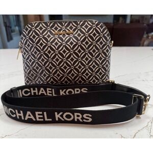 Michael Kors Black Leather Cindy Dome Xbody W/MK Logo Strap