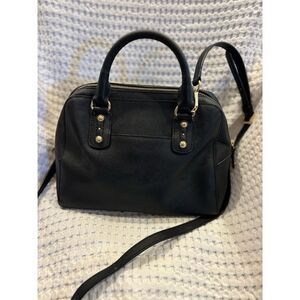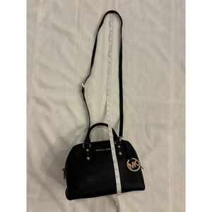 Michael Kors Black Leather Dome Satchel Medium Handbag Gold Accents Purse