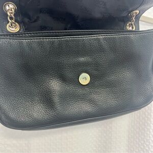 Chic black shoulder bag by Michael Kors. Features elegant gold chain straps and logo detail. Perfect for any occasion.