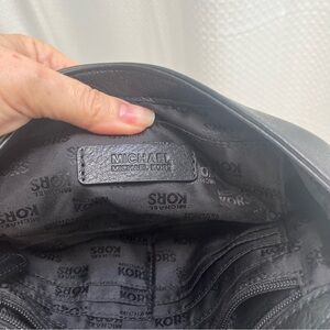 Michael Kors Black Leather Fulton Flap Shoulder Bag with Gold Chain