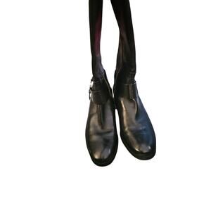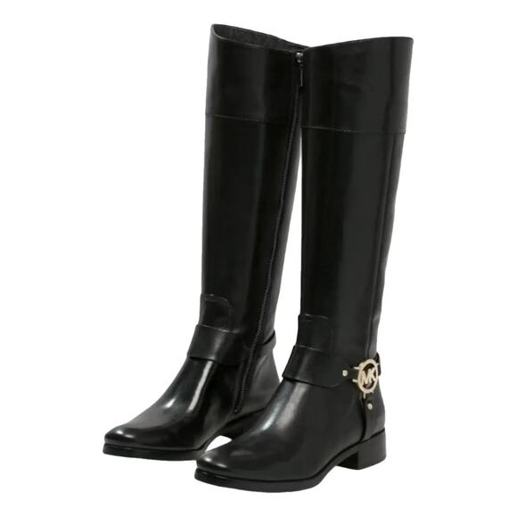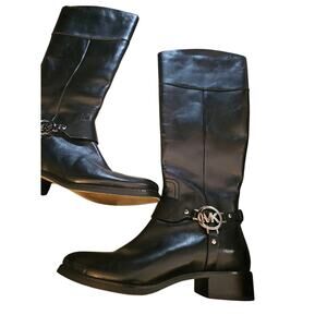 Michael Kors Black Leather Fulton Knee High Tall Riding Boots silver logo sz 6.5