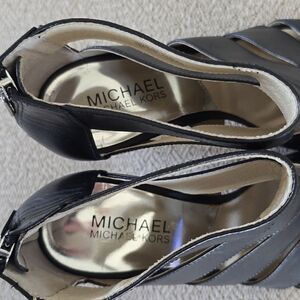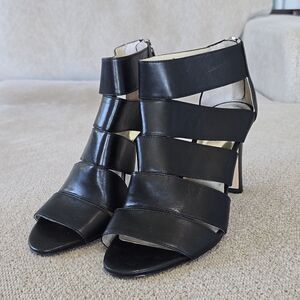 Michael Kors Black Leather Gisele Open Toe Caged Heels - Size 7
