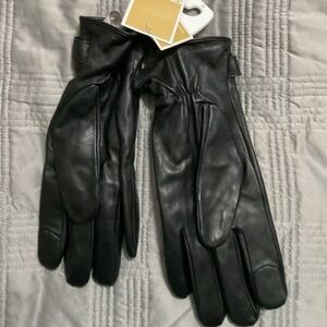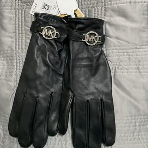 Michael Kors Black Leather Gloves Silver Logo. NWT Size Medium