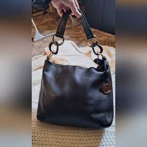 Elevate your style with this elegant black leather shoulder bag from Michael Kors. Perfect for any occasion, this bag combines luxury and functionality. this bag is absolutely stunning has tons of room and pockets it is a zipper closure you can definitely feel the luxury in it!