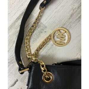 Michael Kors Black Leather Gold Chain Shoulder Hobo Bag Designer Logo Handbag