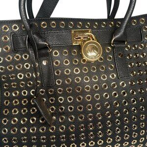 Michael Kors Black Leather Gold Studded Grommet Hamilton Tote