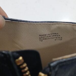 Chic black leather heels with a sleek design. Features a comfortable fit and stylish gold zipper detail.