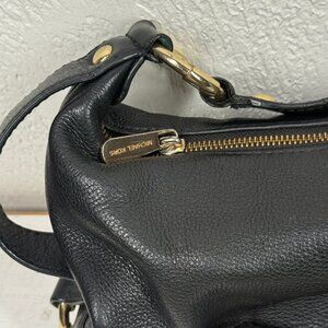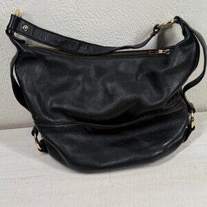Michael Kors Black Leather Hobo Shoulder Bag Gold MK Logo Zip Top Medium