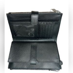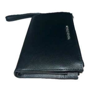 Michael Kors Black Leather Jet Set Double Zip Wallet Wristlet Silver-Tone Accent