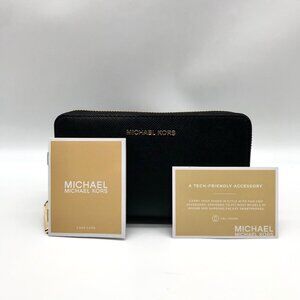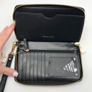 Michael Kors Black Leather Jet Set Large Flat Multifunction Smartphone Wristlet